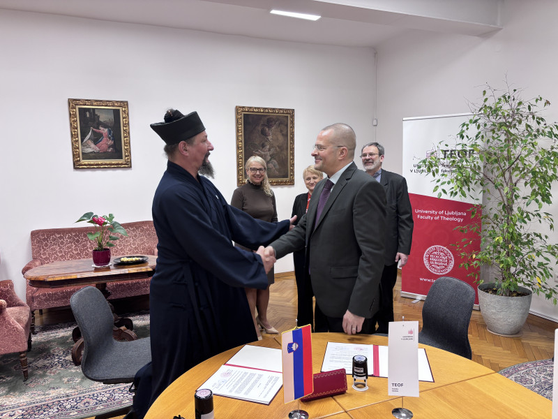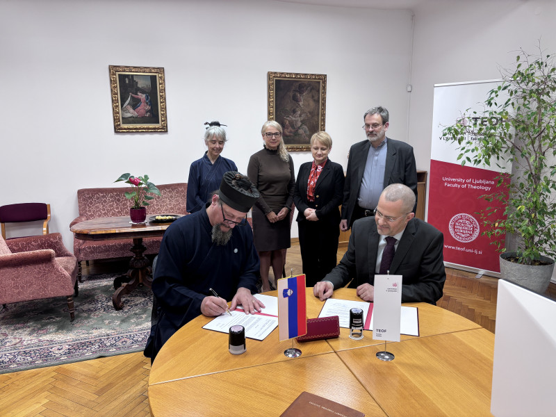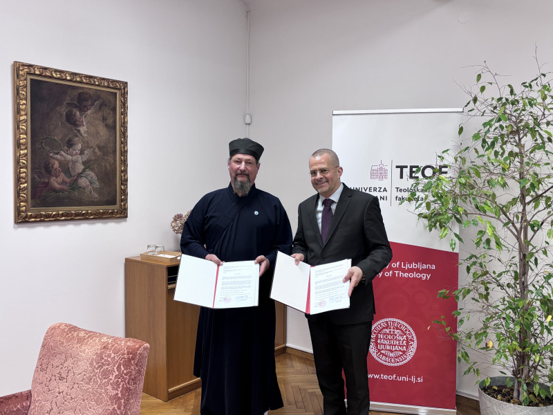 On Wednesday, 18 March 2026, the Dean of the University of Ljubljana Faculty of Theology (UL TEOF), Asst. Prof. Dr. Tadej Stegu, and the Rector of the Slovenian Daoist Temple of Supreme Harmony (SDT) signed a letter of intent to strengthen their cooperation. UL TEOF and SDT aim to enhance and expand their existing successful collaboration in scientific research and education.